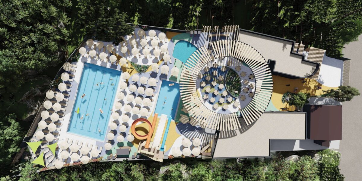 Jedna od izmena u odnosu na prvobitni plan iz 2023. godine jeste rešenje o smanjenju broja bazena sa tri na dva – bazen sa toboganima i plivački bazen – što je uslovilo i smanjenje kapaciteta kompleksa sa 500 na 320 posetilaca. Time će, navodi se, biti optimizovan i broj pratećih sadržaja, poput tuševa, kabina za presvlačenje i sličnih sadržaja. Novina je i korekcija dimenzija restorana, koji će imati samo otvorenu baštu, bez zatvorenog prostora za sedenje.